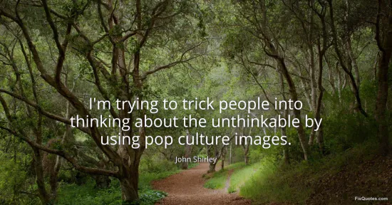 Shirley, John. (2026, January 17). I'm trying to trick people into thinking about the unthinkable by using pop culture images. FixQuotes. https://fixquotes.com/quotes/im-trying-to-trick-people-into-thinking-about-the-56611/