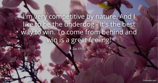 Efron, Zac. (2026, January 15). I'm very competitive by nature. And I like to be the underdog - It's the best way to win. To come from behind and win is a great feeling! FixQuotes. https://fixquotes.com/quotes/im-very-competitive-by-nature-and-i-like-to-be-145573/
