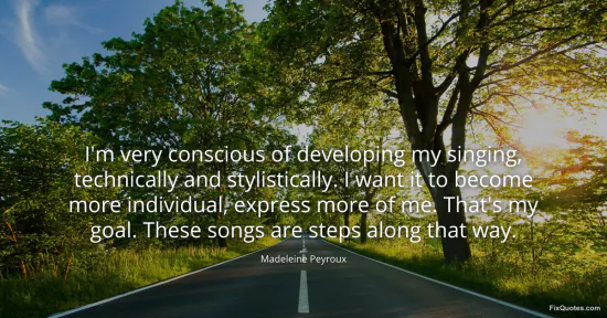 Peyroux, Madeleine. "I'm very conscious of developing my singing, technically and stylistically. I want it to become more individual, express more of me. That's my goal. These songs are steps along that way." FixQuotes. January 15, 2026. https://fixquotes.com/quotes/im-very-conscious-of-developing-my-singing-155489/.