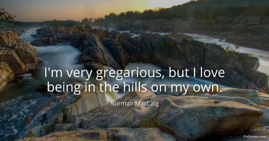 MacCaig, Norman. (2026, January 18). I'm very gregarious, but I love being in the hills on my own. FixQuotes. https://fixquotes.com/quotes/im-very-gregarious-but-i-love-being-in-the-hills-13045/