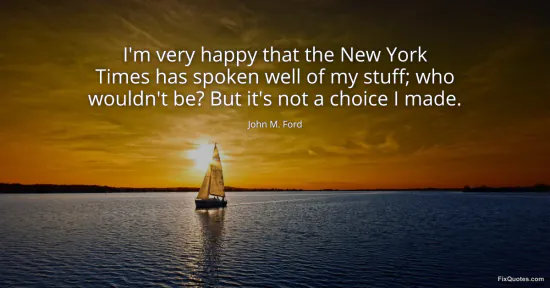 Ford, John M. "I'm very happy that the New York Times has spoken well of my stuff; who wouldn't be? But it's not a choice I made." FixQuotes. January 17, 2026. https://fixquotes.com/quotes/im-very-happy-that-the-new-york-times-has-spoken-71421/.