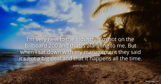 Guarini, Justin. "I'm very new to the industry. I'm not on the Billboard 200 and that is alarming to me. But when I sat down with my management they said it's not a big deal and that it happens all the time." FixQuotes. January 16, 2026. https://fixquotes.com/quotes/im-very-new-to-the-industry-im-not-on-the-103285/.