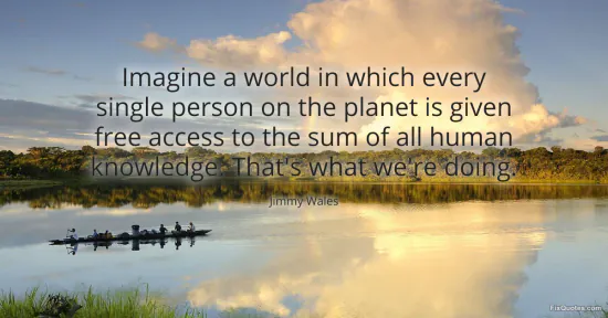 Wales, Jimmy. (2026, January 15). Imagine a world in which every single person on the planet is given free access to the sum of all human knowledge. That's what we're doing. FixQuotes. https://fixquotes.com/quotes/imagine-a-world-in-which-every-single-person-on-126365/
