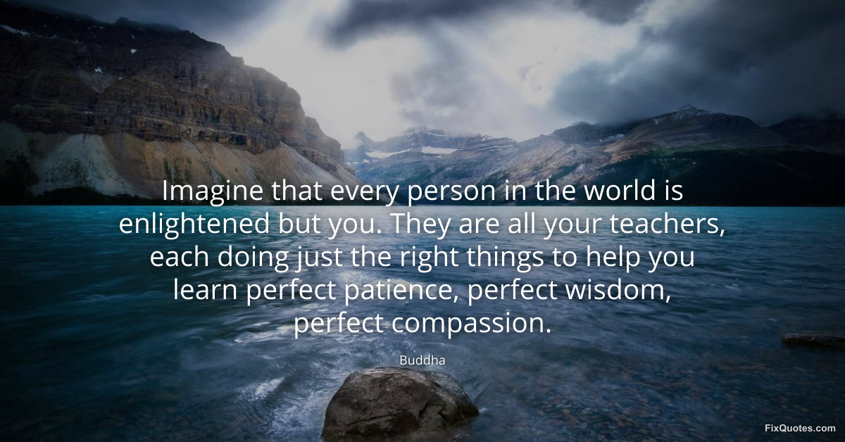 Buddha. (2026, March 10). Imagine that every person in the world is enlightened but you. They are all your teachers, each doing just the right things to help you learn perfect patience, perfect wisdom, perfect compassion. FixQuotes. https://fixquotes.com/quotes/imagine-that-every-person-in-the-world-is-185946/