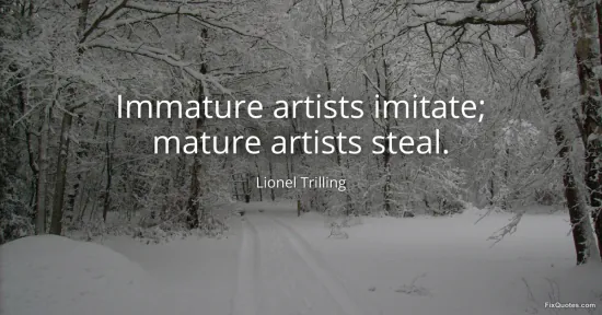 Trilling, Lionel. (2026, February 16). Immature artists imitate; mature artists steal. FixQuotes. https://fixquotes.com/quotes/immature-artists-imitate-mature-artists-steal-166210/