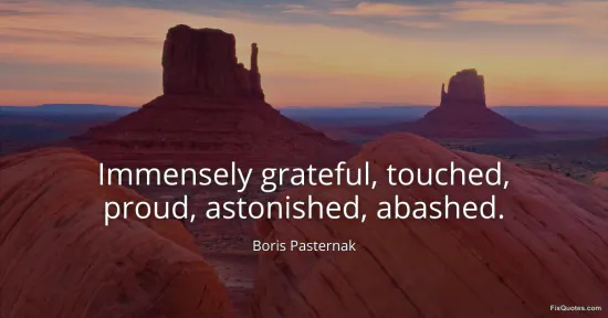 Pasternak, Boris. (2026, January 18). Immensely grateful, touched, proud, astonished, abashed. FixQuotes. https://fixquotes.com/quotes/immensely-grateful-touched-proud-astonished-7162/