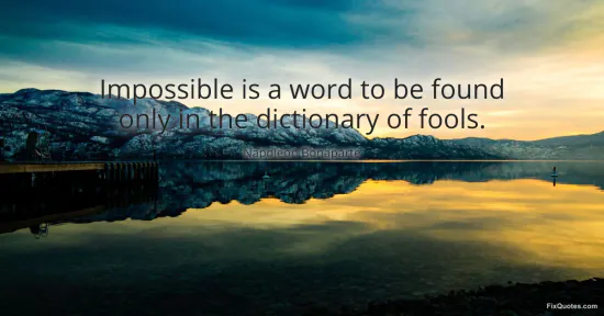"Impossible is a word to be found only in the dictionary of fools." FixQuotes, 14 Jan. 2026, https://fixquotes.com/quotes/impossible-is-a-word-to-be-found-only-in-the-28198/. Accessed 12 Feb. 2026.