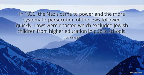 Steinberger, Jack. (2026, January 17). In 1933, the Nazis came to power and the more systematic persecution of the Jews followed quickly. Laws were enacted which excluded Jewish children from higher education in public schools. FixQuotes. https://fixquotes.com/quotes/in-1933-the-nazis-came-to-power-and-the-more-61904/