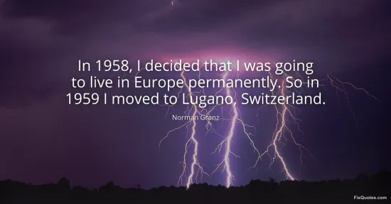 Granz, Norman. (2026, January 17). In 1958, I decided that I was going to live in Europe permanently. So in 1959 I moved to Lugano, Switzerland. FixQuotes. https://fixquotes.com/quotes/in-1958-i-decided-that-i-was-going-to-live-in-76670/