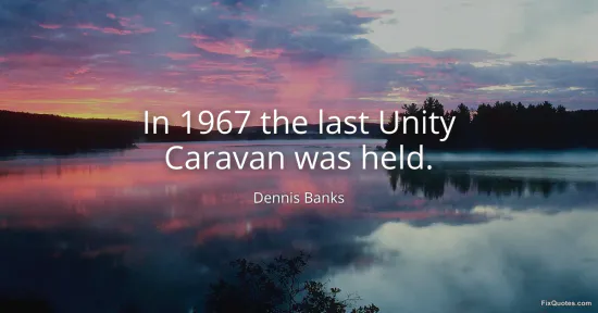 A date stamp can be a eulogy when it’s delivered this plainly. “In 1967 the last Unity Caravan was held” reads like a line from an archive, but Dennis Banks isn’t doing neutral record-keeping. The spareness is the point: the word “last” turns a community event into a marker of rupture, a quiet indictment of whatever forces made “unity” unsustainable in public, on the road, together.