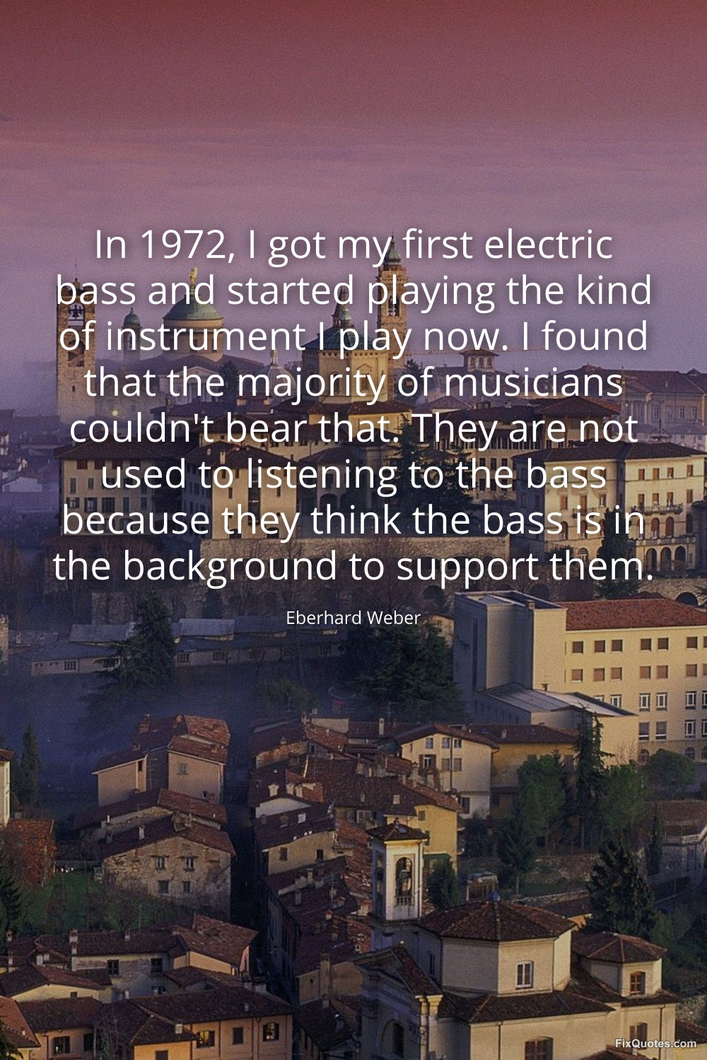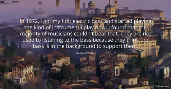 Weber, Eberhard. "In 1972, I got my first electric bass and started playing the kind of instrument I play now. I found that the majority of musicians couldn't bear that. They are not used to listening to the bass because they think the bass is in the background to support them." FixQuotes. January 16, 2026. https://fixquotes.com/quotes/in-1972-i-got-my-first-electric-bass-and-started-124660/.