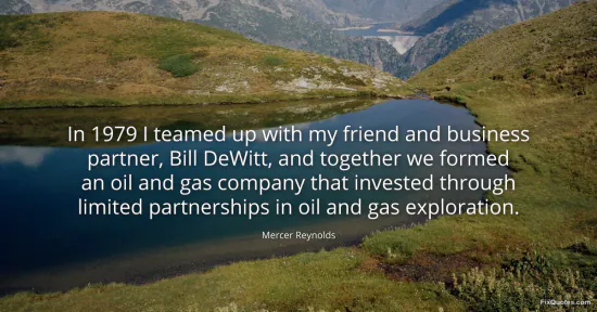 Reynolds, Mercer. (2026, January 16). In 1979 I teamed up with my friend and business partner, Bill DeWitt, and together we formed an oil and gas company that invested through limited partnerships in oil and gas exploration. FixQuotes. https://fixquotes.com/quotes/in-1979-i-teamed-up-with-my-friend-and-business-128210/