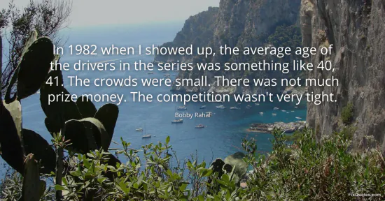 Rahal, Bobby. "In 1982 when I showed up, the average age of the drivers in the series was something like 40, 41. The crowds were small. There was not much prize money. The competition wasn't very tight." FixQuotes. January 17, 2026. https://fixquotes.com/quotes/in-1982-when-i-showed-up-the-average-age-of-the-45464/.