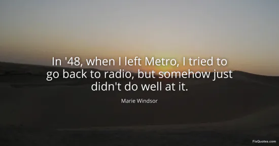 Windsor, Marie. (2026, February 16). In '48, when I left Metro, I tried to go back to radio, but somehow just didn't do well at it. FixQuotes. https://fixquotes.com/quotes/in-48-when-i-left-metro-i-tried-to-go-back-to-142770/