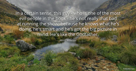 Anderson, Kevin J. "In a certain sense, this guy - who is one of the most evil people in the book - he's not really that bad at running the show, because he knows what he's doing, he's smart and he's got the big picture in mind. He's like the Godfather." FixQuotes. January 16, 2026. https://fixquotes.com/quotes/in-a-certain-sense-this-guy-who-is-one-of-the-103968/.