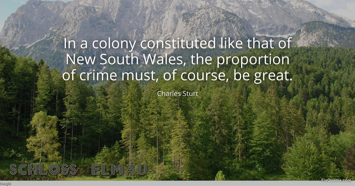 Sturt, Charles. (2026, February 20). In a colony constituted like that of New South Wales, the proportion of crime must, of course, be great. FixQuotes. https://fixquotes.com/quotes/in-a-colony-constituted-like-that-of-new-south-23067/