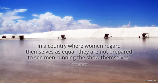 Harman, Harriet. (2026, January 17). In a country where women regard themselves as equal, they are not prepared to see men running the show themselves. FixQuotes. https://fixquotes.com/quotes/in-a-country-where-women-regard-themselves-as-77255/