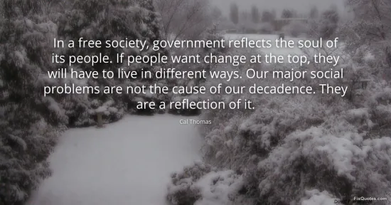 Thomas, Cal. (2026, January 15). In a free society, government reflects the soul of its people. If people want change at the top, they will have to live in different ways. Our major social problems are not the cause of our decadence. They are a reflection of it. FixQuotes. https://fixquotes.com/quotes/in-a-free-society-government-reflects-the-soul-of-142308/