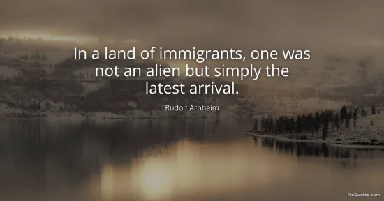 Arnheim, Rudolf. "In a land of immigrants, one was not an alien but simply the latest arrival." FixQuotes. January 15, 2026. https://fixquotes.com/quotes/in-a-land-of-immigrants-one-was-not-an-alien-but-116573/.