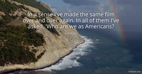Burns, Ken. "In a sense I've made the same film over and over again. In all of them I've asked, 'Who are we as Americans?" FixQuotes. January 16, 2026. https://fixquotes.com/quotes/in-a-sense-ive-made-the-same-film-over-and-over-107561/.