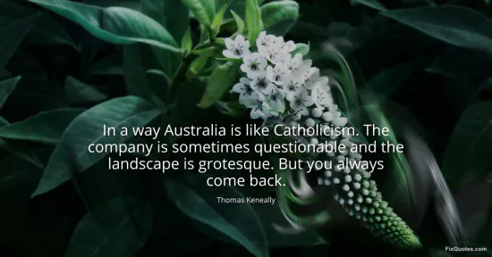Keneally, Thomas. (2026, January 17). In a way Australia is like Catholicism. The company is sometimes questionable and the landscape is grotesque. But you always come back. FixQuotes. https://fixquotes.com/quotes/in-a-way-australia-is-like-catholicism-the-78673/