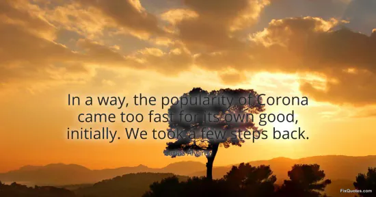 "In a way, the popularity of Corona came too fast for its own good, initially. We took a few steps back." FixQuotes, 17 Jan. 2026, https://fixquotes.com/quotes/in-a-way-the-popularity-of-corona-came-too-fast-49040/. Accessed 13 Feb. 2026.