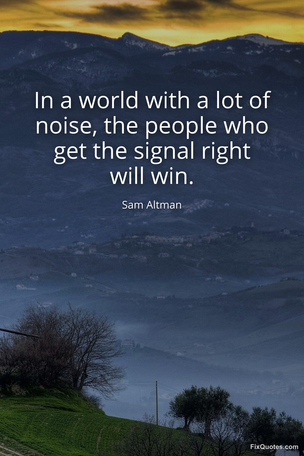Altman, Sam. "In a world with a lot of noise, the people who get the signal right will win." FixQuotes. January 25, 2026. https://fixquotes.com/quotes/in-a-world-with-a-lot-of-noise-the-people-who-get-184262/.