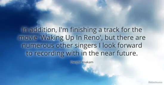 Yoakam, Dwight. "In addition, I'm finishing a track for the movie 'Waking Up In Reno', but there are numerous other singers I look forward to recording with in the near future." FixQuotes. January 17, 2026. https://fixquotes.com/quotes/in-addition-im-finishing-a-track-for-the-movie-50067/.