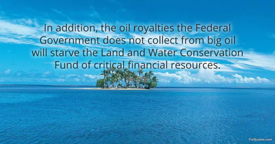 "In addition, the oil royalties the Federal Government does not collect from big oil will starve the Land and Water Conservation Fund of critical financial resources." FixQuotes, 16 Jan. 2026, https://fixquotes.com/quotes/in-addition-the-oil-royalties-the-federal-95728/. Accessed 12 Feb. 2026.