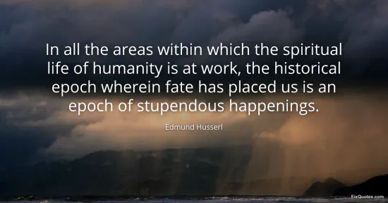 Husserl, Edmund. "In all the areas within which the spiritual life of humanity is at work, the historical epoch wherein fate has placed us is an epoch of stupendous happenings." FixQuotes. January 15, 2026. https://fixquotes.com/quotes/in-all-the-areas-within-which-the-spiritual-life-167368/.