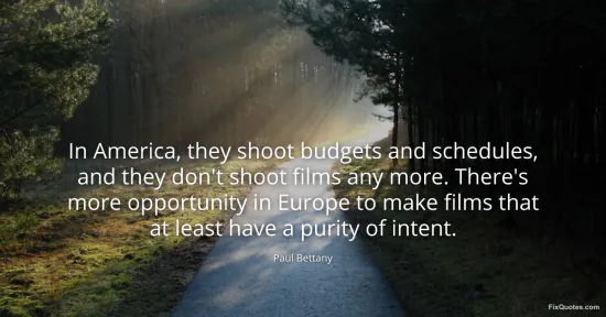 Bettany, Paul. (2026, January 16). In America, they shoot budgets and schedules, and they don't shoot films any more. There's more opportunity in Europe to make films that at least have a purity of intent. FixQuotes. https://fixquotes.com/quotes/in-america-they-shoot-budgets-and-schedules-and-84487/