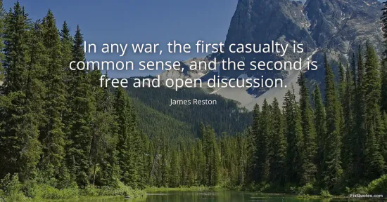 Reston, James. (2026, January 15). In any war, the first casualty is common sense, and the second is free and open discussion. FixQuotes. https://fixquotes.com/quotes/in-any-war-the-first-casualty-is-common-sense-and-126319/