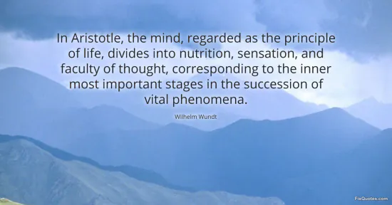Wundt, Wilhelm. "In Aristotle, the mind, regarded as the principle of life, divides into nutrition, sensation, and faculty of thought, corresponding to the inner most important stages in the succession of vital phenomena." FixQuotes. February 17, 2026. https://fixquotes.com/quotes/in-aristotle-the-mind-regarded-as-the-principle-145528/.