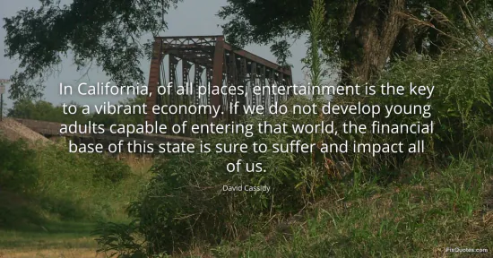 Cassidy, David. "In California, of all places, entertainment is the key to a vibrant economy. If we do not develop young adults capable of entering that world, the financial base of this state is sure to suffer and impact all of us." FixQuotes. January 16, 2026. https://fixquotes.com/quotes/in-california-of-all-places-entertainment-is-the-103492/.