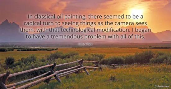 Flynt, Henry. "In classical oil painting, there seemed to be a radical turn to seeing things as the camera sees them, with that technological modification. I began to have a tremendous problem with all of this." FixQuotes. January 15, 2026. https://fixquotes.com/quotes/in-classical-oil-painting-there-seemed-to-be-a-150907/.