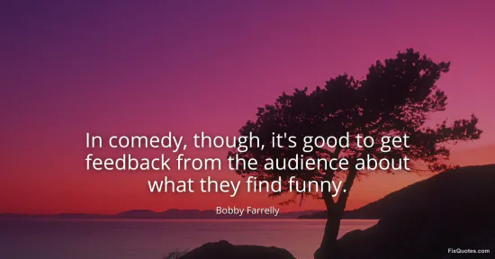 Farrelly, Bobby. (2026, January 16). In comedy, though, it's good to get feedback from the audience about what they find funny. FixQuotes. https://fixquotes.com/quotes/in-comedy-though-its-good-to-get-feedback-from-109536/