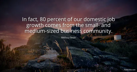 Bean, Melissa. (2026, January 15). In fact, 80 percent of our domestic job growth comes from the small- and medium-sized business community. FixQuotes. https://fixquotes.com/quotes/in-fact-80-percent-of-our-domestic-job-growth-150975/
