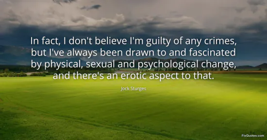 Sturges, Jock. "In fact, I don't believe I'm guilty of any crimes, but I've always been drawn to and fascinated by physical, sexual and psychological change, and there's an erotic aspect to that." FixQuotes. January 18, 2026. https://fixquotes.com/quotes/in-fact-i-dont-believe-im-guilty-of-any-crimes-11701/.