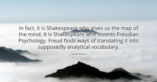 Bloom, Harold. (2026, January 15). In fact, it is Shakespeare who gives us the map of the mind. It is Shakespeare who invents Freudian Psychology. Freud finds ways of translating it into supposedly analytical vocabulary. FixQuotes. https://fixquotes.com/quotes/in-fact-it-is-shakespeare-who-gives-us-the-map-of-84871/