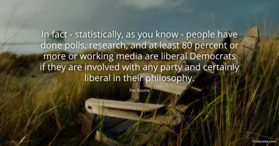 Boone, Pat. (2026, January 16). In fact - statistically, as you know - people have done polls, research, and at least 80 percent or more or working media are liberal Democrats if they are involved with any party and certainly liberal in their philosophy. FixQuotes. https://fixquotes.com/quotes/in-fact-statistically-as-you-know-people-have-89046/