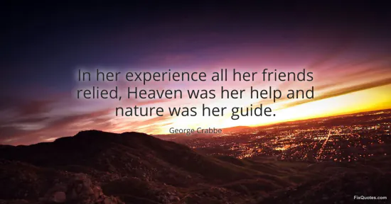 Crabbe, George. "In her experience all her friends relied, Heaven was her help and nature was her guide." FixQuotes. Accessed February 2, 2026. https://fixquotes.com/quotes/in-her-experience-all-her-friends-relied-heaven-167475/.