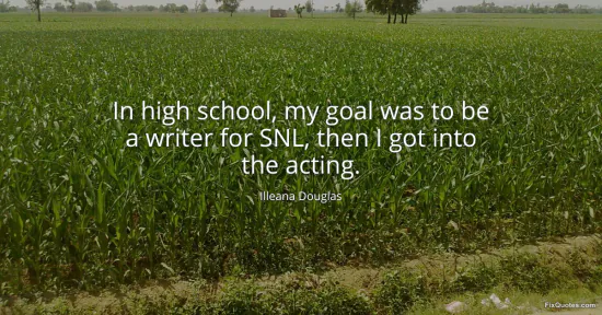 Douglas, Illeana. "In high school, my goal was to be a writer for SNL, then I got into the acting." FixQuotes. January 16, 2026. https://fixquotes.com/quotes/in-high-school-my-goal-was-to-be-a-writer-for-snl-82920/.