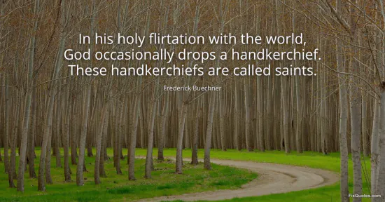 Buechner, Frederick. "In his holy flirtation with the world, God occasionally drops a handkerchief. These handkerchiefs are called saints." FixQuotes. January 16, 2026. https://fixquotes.com/quotes/in-his-holy-flirtation-with-the-world-god-115134/.