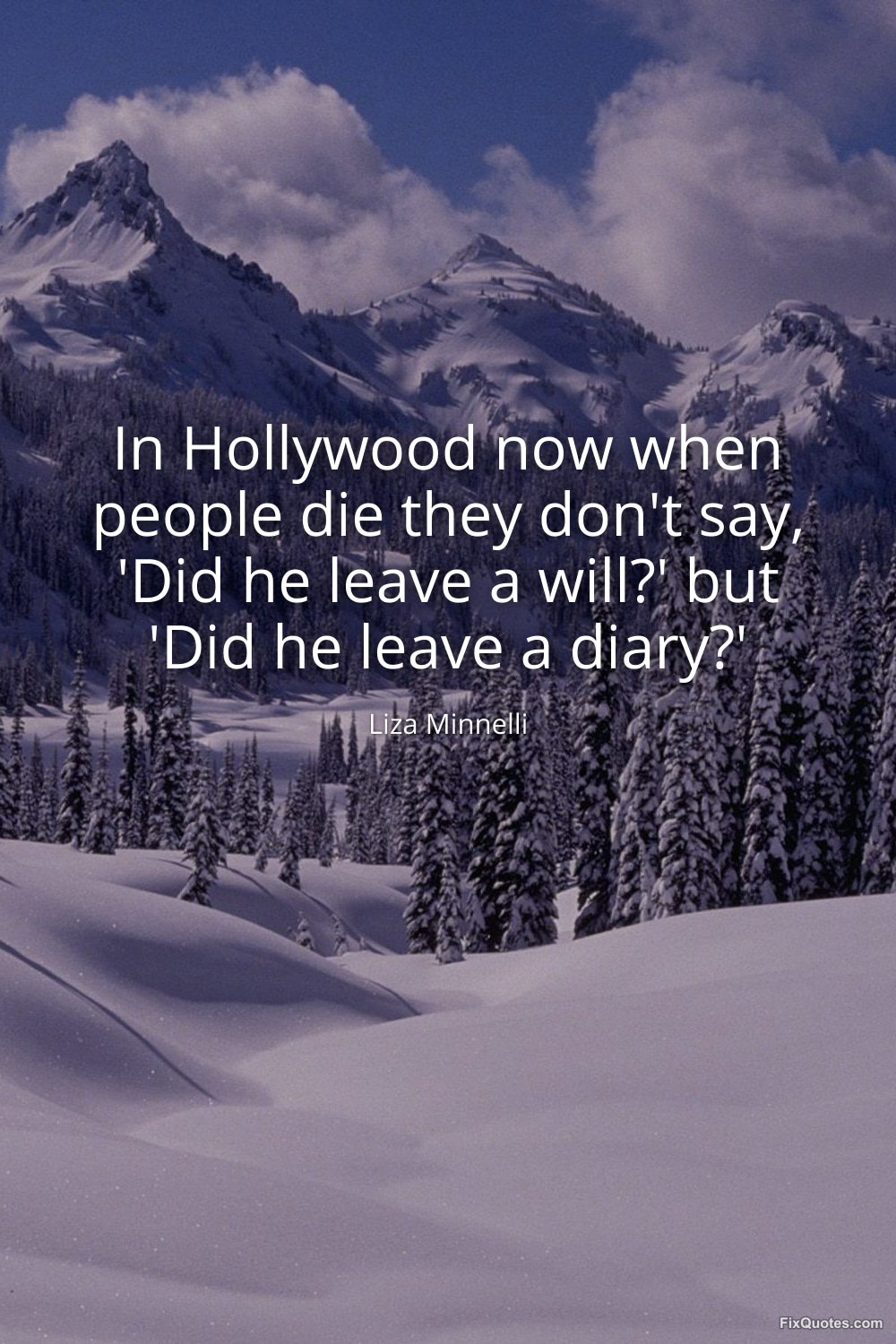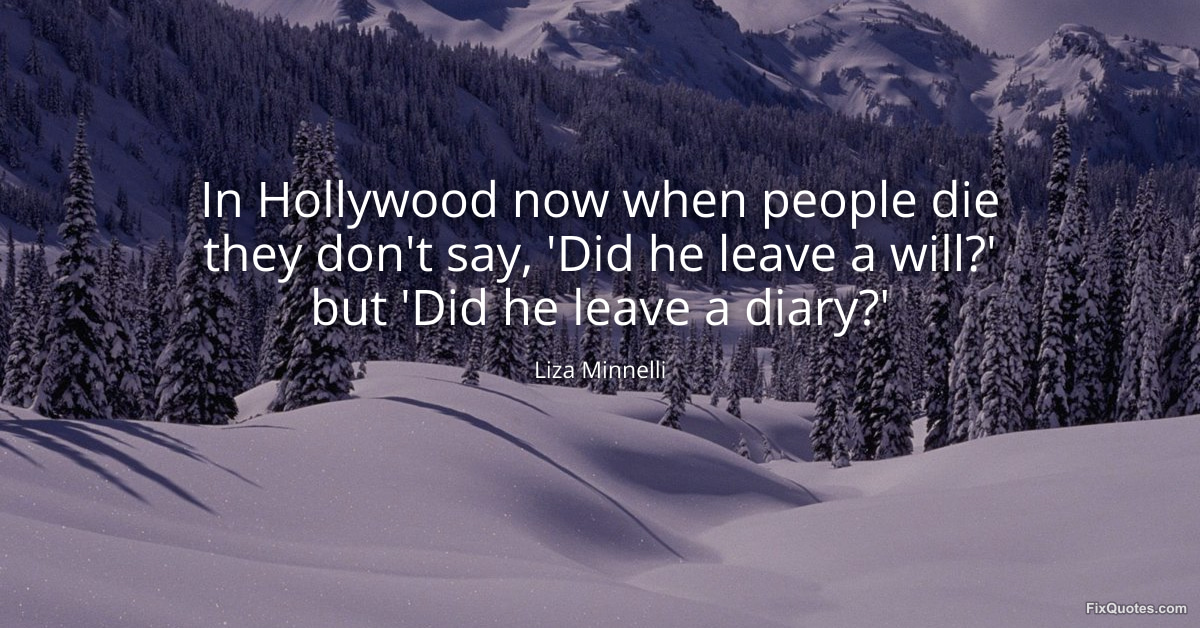 Minnelli, Liza. (2026, January 15). In Hollywood now when people die they don't say, 'Did he leave a will?' but 'Did he leave a diary?'. FixQuotes. https://fixquotes.com/quotes/in-hollywood-now-when-people-die-they-dont-say-153768/