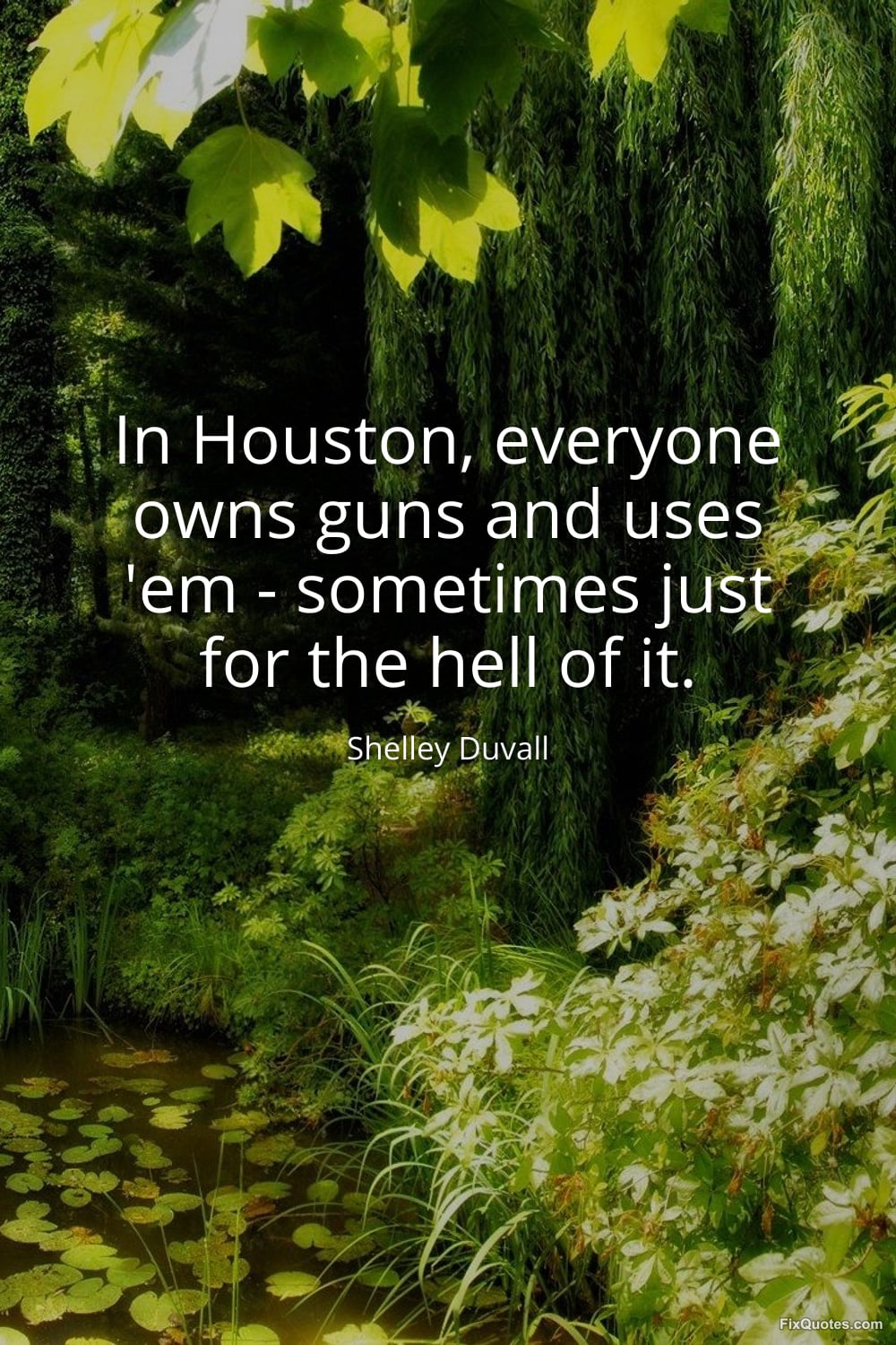 Duvall, Shelley. (2026, February 18). In Houston, everyone owns guns and uses 'em - sometimes just for the hell of it. FixQuotes. https://fixquotes.com/quotes/in-houston-everyone-owns-guns-and-uses-em-78203/