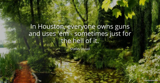 Duvall, Shelley. "In Houston, everyone owns guns and uses 'em - sometimes just for the hell of it." FixQuotes. February 18, 2026. https://fixquotes.com/quotes/in-houston-everyone-owns-guns-and-uses-em-78203/.