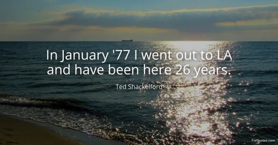 Shackelford, Ted. "In January '77 I went out to LA and have been here 26 years." FixQuotes. January 17, 2026. https://fixquotes.com/quotes/in-january-77-i-went-out-to-la-and-have-been-here-72412/.