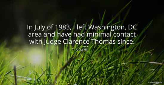 "In July of 1983, I left Washington, DC area and have had minimal contact with Judge Clarence Thomas since." FixQuotes, 16 Jan. 2026, https://fixquotes.com/quotes/in-july-of-1983-i-left-washington-dc-area-and-138891/. Accessed 12 Feb. 2026.