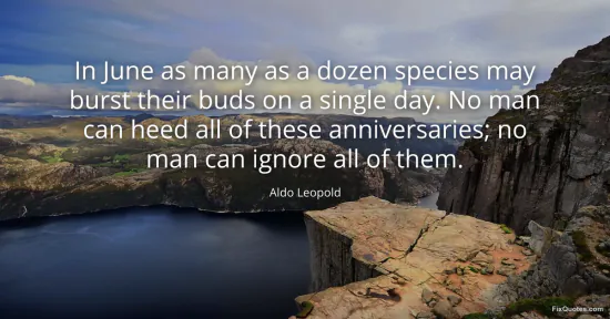 Leopold, Aldo. (2026, January 18). In June as many as a dozen species may burst their buds on a single day. No man can heed all of these anniversaries; no man can ignore all of them. FixQuotes. https://fixquotes.com/quotes/in-june-as-many-as-a-dozen-species-may-burst-8197/