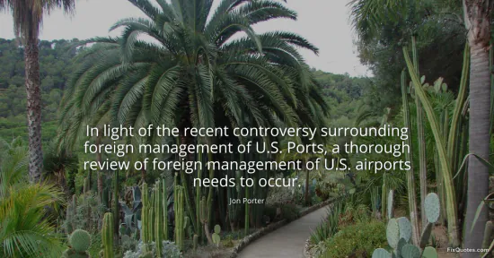 "In light of the recent controversy surrounding foreign management of U.S. Ports, a thorough review of foreign management of U.S. airports needs to occur." FixQuotes, 15 Jan. 2026, https://fixquotes.com/quotes/in-light-of-the-recent-controversy-surrounding-151687/. Accessed 13 Feb. 2026.